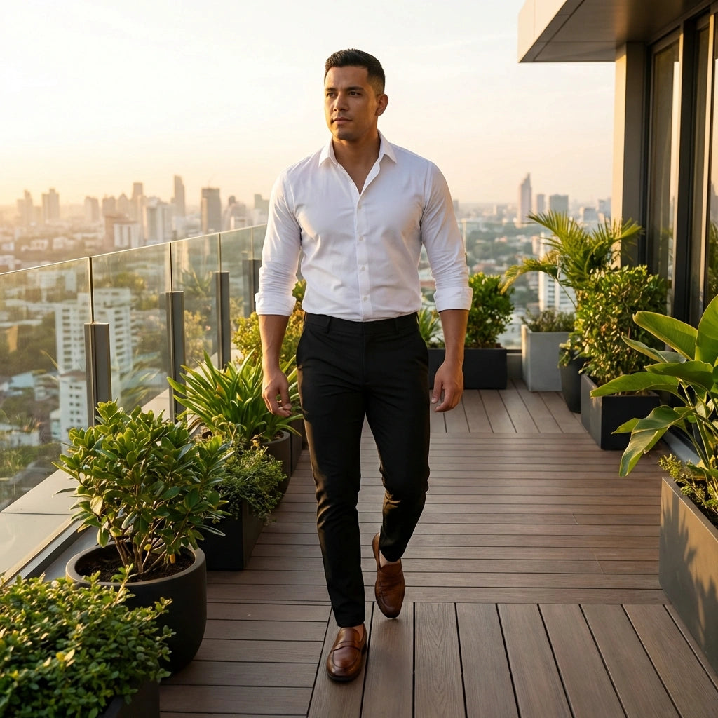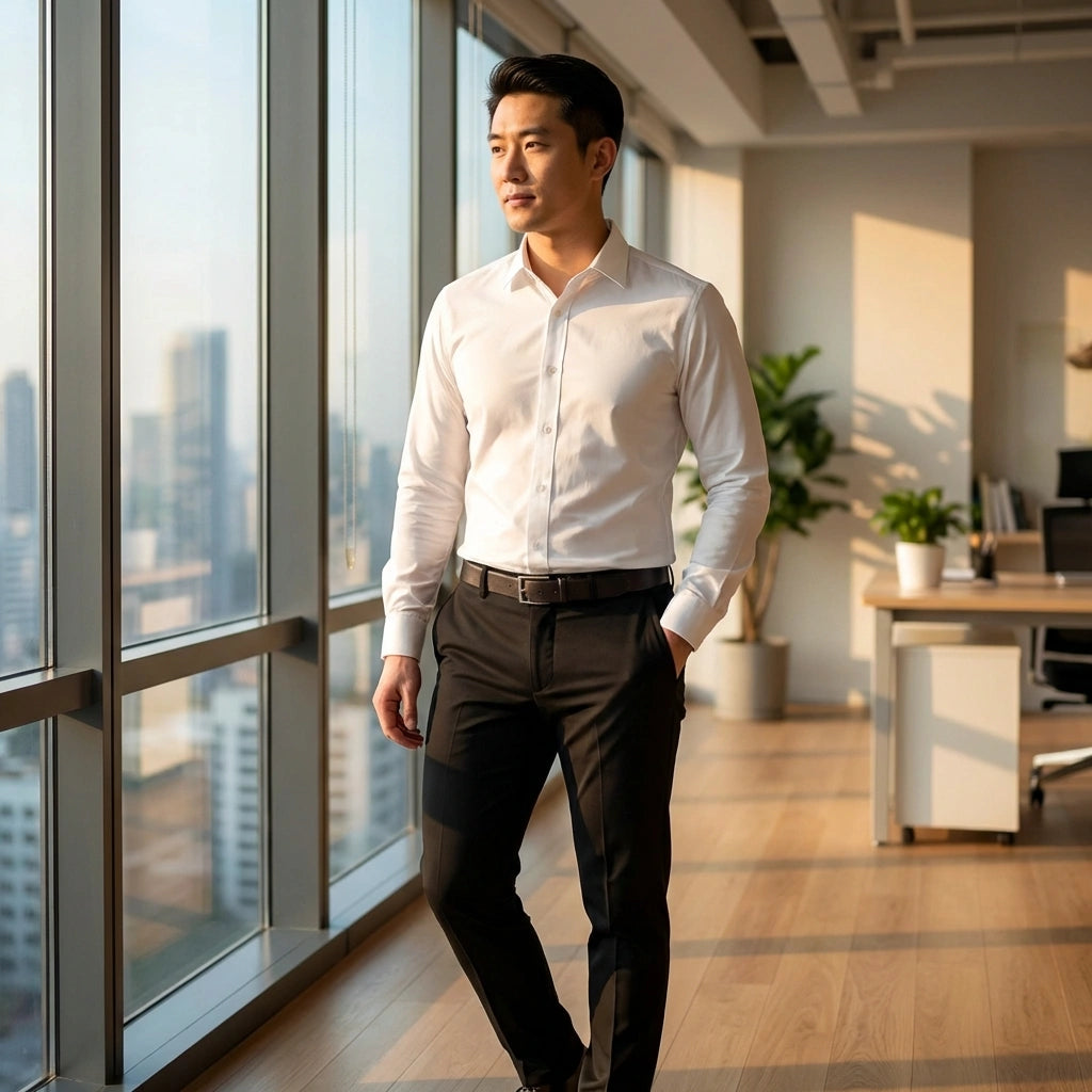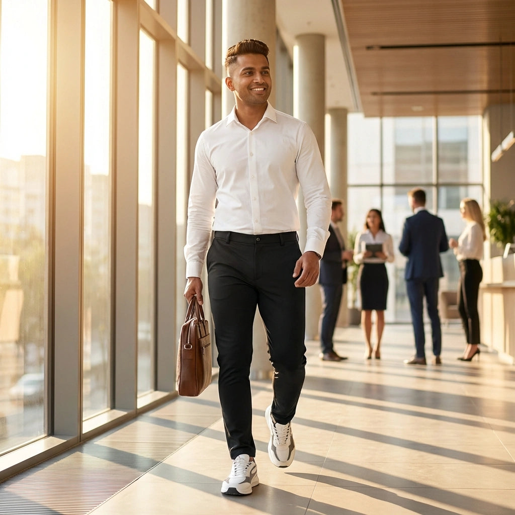 Crafted from premium stretch cotton, these pants move with you while maintaining their polished look. Experience unrestricted comfort whether you're commuting, working, or relaxing - no stiffness or restriction.